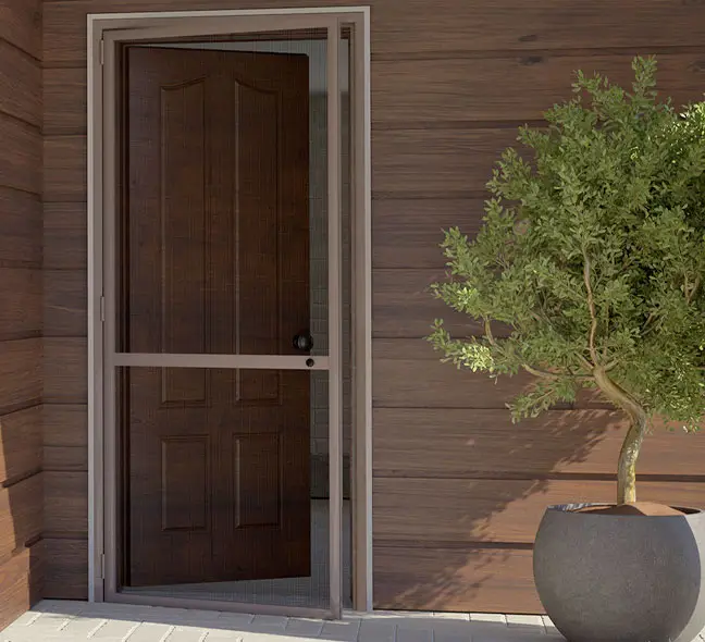 De hoja abatible magnética, con pomo. Adecuada para: puerta balconera y ventana